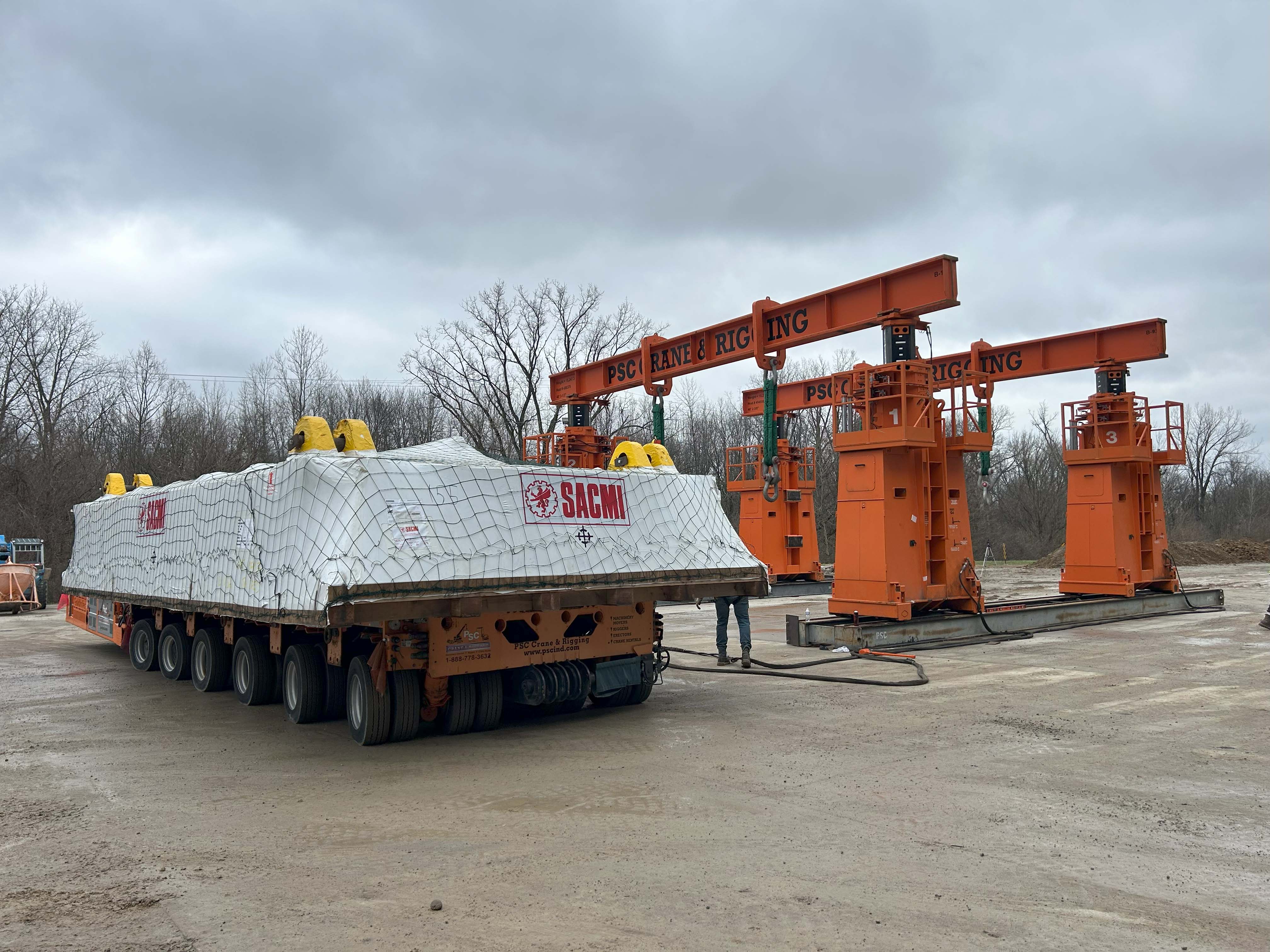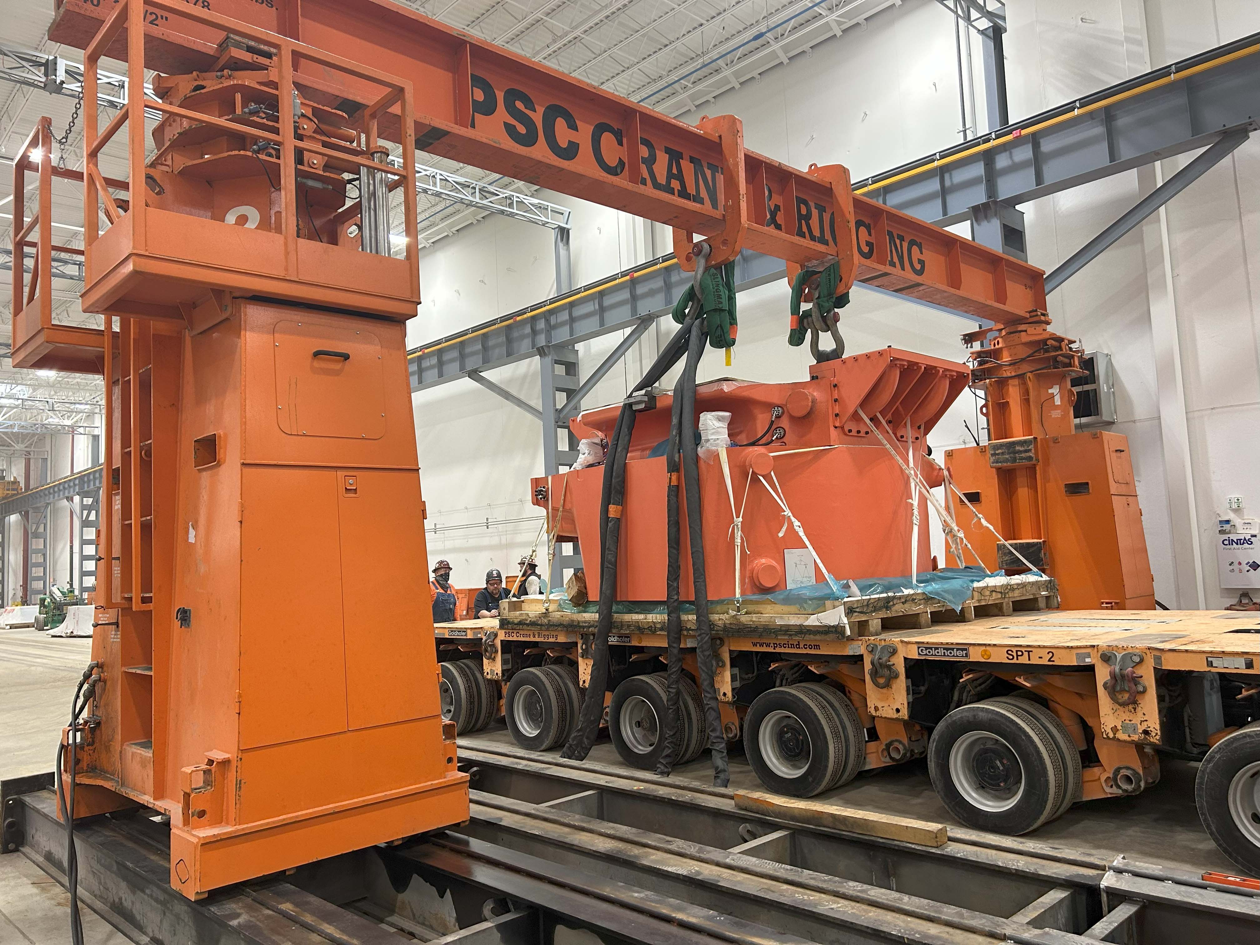 PSC executed a complex, multi-phase press installation project involving international shipments, super loads, precision rigging, and structural modifications within the customer’s facility.