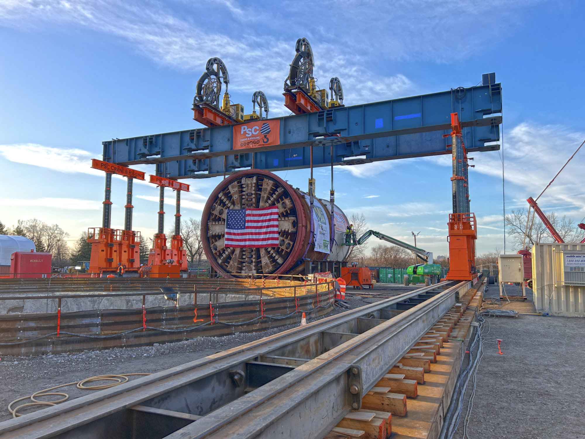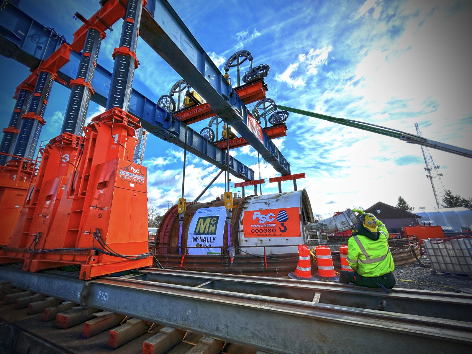 The scope of this project involved the supply and execution of a specialized lift system to handle and lower a Tunnel Boring Machine (TBM) with an estimated weight of 766 metric tons into a starter shaft approximately 185 feet deep. The project encompassed full-service delivery, including engineering design, project management, site supervision, and skilled labor (operators and riggers) for the assembly, operation, and disassembly of the lifting system.
